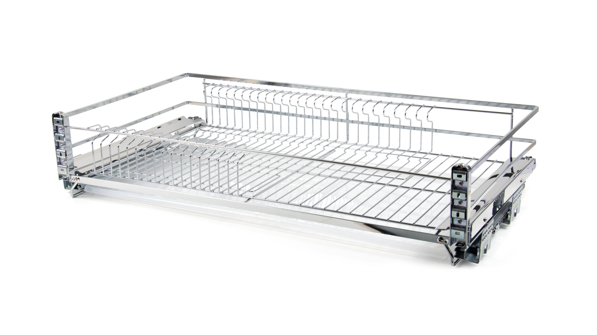 MIRA KRS06 — выдвижная корзина-сушка в эксклюзивном дизайне с плоским прутком предназначена для хранения разноплановой посуды в нижней базе мебельного гарнитура.