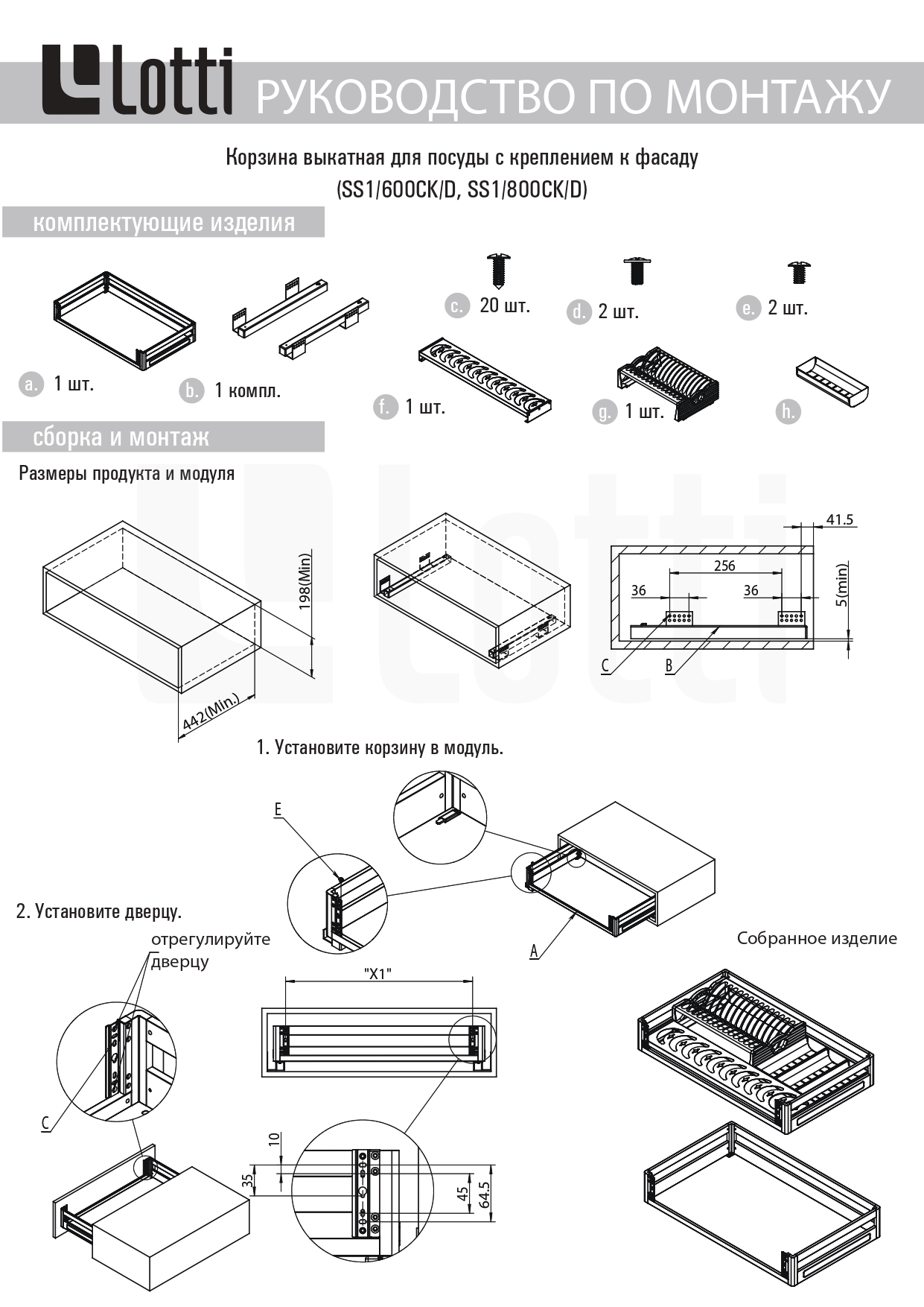 Cargo 800мм Посудосушитель с кр. к фасаду с дов. 425х764х165 нерж.сталь, SS1/800CK/D-Е