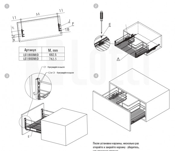 Cargo 800мм Корзина под мойку с крепл. к фас., с дов. 764х460х180мм хром LS1/800M/D-Е