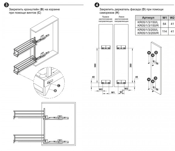 Устройство движения: Направляющие скрытого монтажа