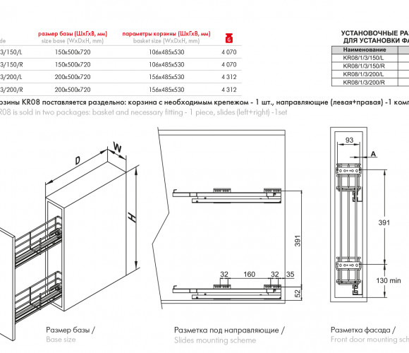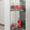 Bellissimo функционирует на направляющих скрытого монтажа полного выдвижения с амортизацией. Модель обеспечит удобный полный доступ к продуктам и жидкостям. Ассортимент Bellissimo включает четыре варианта бутылочниц для нижних баз кухонных гарнитуров: для модулей размером 150 мм и 200 мм с левым или правым расположением направляющих.