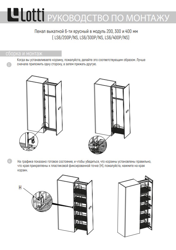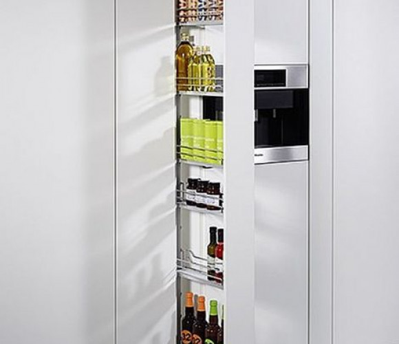 Выкатной пенал (или выдвижная колонна) – один из самых удобных, вместительных и функциональных кухонных механизмов. Выкатной пенал поможет организовать хранение предметов и сэкономить пространство на кухне. Модель оснащена направляющими полного выдвижения, а крепления расположены сверху и снизу. В результате, пенал выдвигается целиком, обеспечивая полный доступ к полкам с любой стороны – содержимое корзин легко рассмотреть и просто достать. Регулировка по высоте пенала до 30см, полки регулируются по высоте.