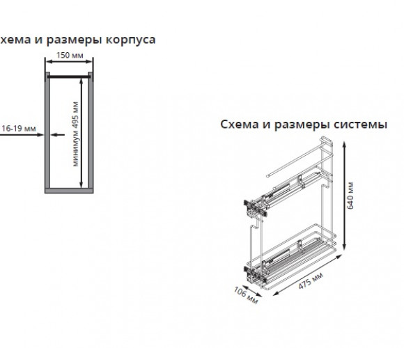 Cargo mini 150 мм Starax Tandem Cristal, (106*475*640) частичн.выдв., левая S-2501-C