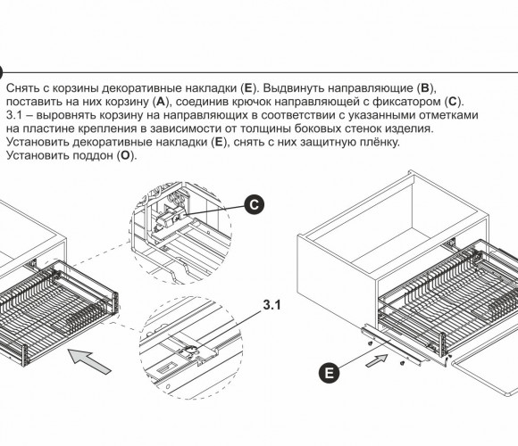 Для бесшумной работы изделия предусмотрены специальные демпфирующие вставки, прикрепить которые можно в места контакта корзины с выступами направляющих.