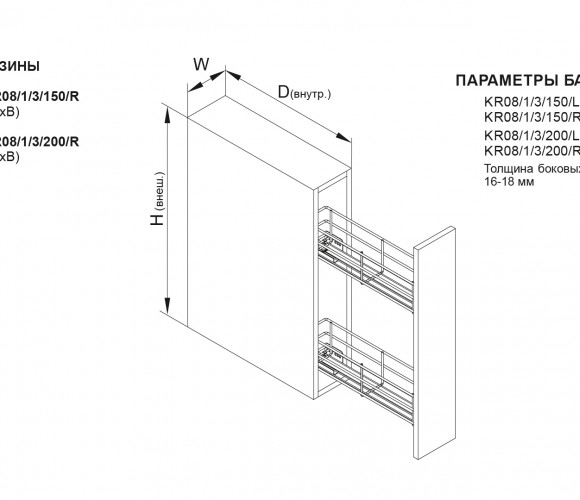 Bellissimo функционирует на направляющих скрытого монтажа полного выдвижения с амортизацией. Модель обеспечит удобный полный доступ к продуктам и жидкостям. Ассортимент Bellissimo включает четыре варианта бутылочниц для нижних баз кухонных гарнитуров: для модулей размером 150 мм и 200 мм с левым или правым расположением направляющих.