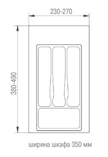 Вкладыш М 300-350 мм серый металлик – кухонный аксессуар, необходимый практически в любом доме. Лоток позволяет удобно рассортировать внутри кухонного ящика ложки, вилки, ножи и другие постоянно используемые столовые приборы. Лоток специально подбирается под размеры конкретного ящика стола или кухонного гарнитура.