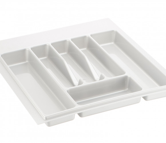 Вкладыш М 500-550 мм белый – кухонный аксессуар, необходимый практически в любом доме. Лоток позволяет удобно рассортировать внутри кухонного ящика ложки, вилки, ножи и другие постоянно используемые столовые приборы. Лоток специально подбирается под размеры конкретного ящика стола или кухонного гарнитура.