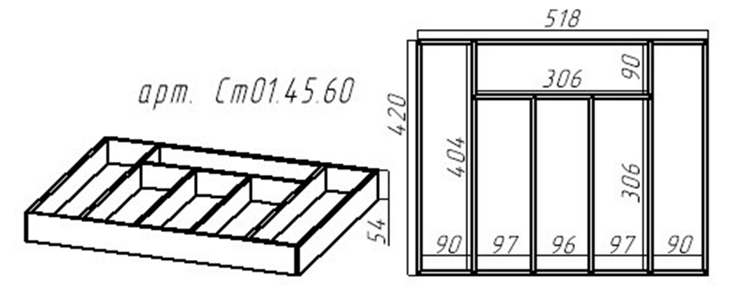 Вкладыш д/стол. приборов СТ01.45.60 (518*420*54мм) Массив Дуб