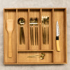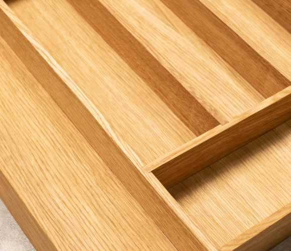 Вкладыш для столовых приборов выполнен из экологически чистого прочного дерева -дуб, материал не впитывает запахи, легко моется, не деформируется. Удобное приспособление для организации кухонного пространства. Подставка для столовых приборов вместительная и компактная, сохранит порядок и не займет много места, идеально подойдет для ящика кухонного гарнитура. Вкладыш для ножей универсальный приобретается отдельно.