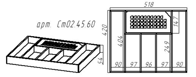Вкладыш д/стол. приборов СТ02.45.60 (518*420*54мм) Массив Дуб