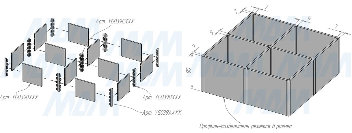Универсальные разделители SOTA — это компонентная система для самостоятельной сборки разделителей и органайзеров любой сложности, состоящая из профиля и соединительных элементов.