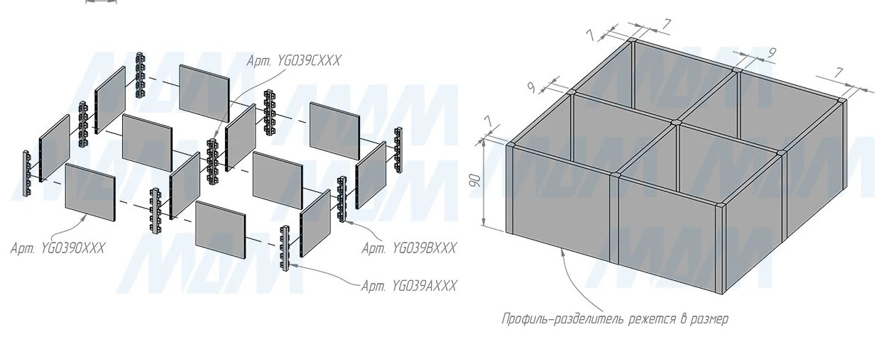 Универсальные разделители SOTA — это компонентная система для самостоятельной сборки разделителей и органайзеров любой сложности, состоящая из профиля и соединительных элементов.