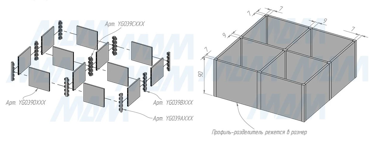 Универсальные разделители SOTA — это компонентная система для самостоятельной сборки разделителей и органайзеров любой сложности, состоящая из профиля и соединительных элементов.