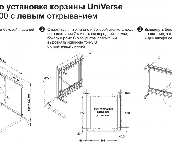 Корзина универсальна и может быть установлена как в левых, так и правых модулях на 900-1000мм.