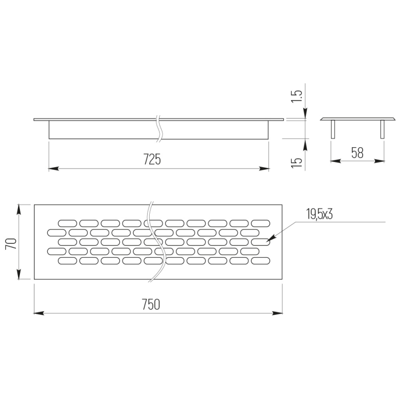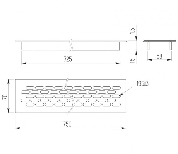 Решетка вентиляционная 750х70мм Алюминий VG-70750-05