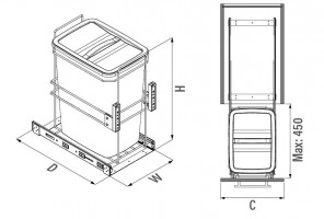 Ведро мусорное для распашных фасадов BIN KR09/1/0/450   БОЯРД
