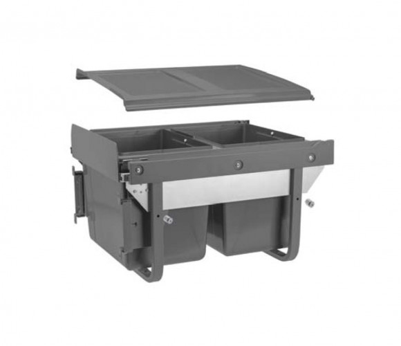 Сегрегатор для модуля 450мм (2x15L)антрацит, с креплением фасада, с доводчиком (в312мм, ш395мм, г490мм) - современная система для сортировки бытовых отходов, устанавливаемая в кухонной модуль соответствующего размера. Сегрегатор выдвигается из шкафа и задвигается обратно посредством направляющих с доводчиком. Мусорные ведра-вкладыши изготовлены из экологически чистого пластика.