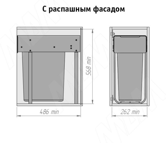 Комплектация: рама с выдвижной частью (в сборе) — 1 шт., ведро с ручкой (в сборе) — 1 шт., установочный крепёж для рамы — 1 компл.
