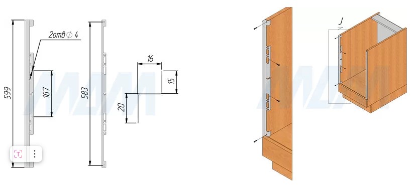 Термозащитный профиль для духового шкафа, серый, комп.2шт 2015.372.16
