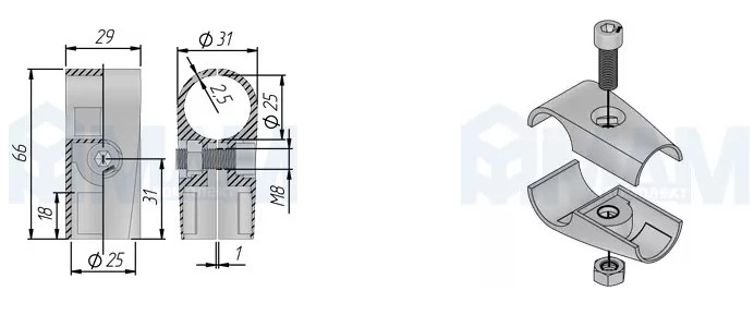 Соединитель перпендикулярный 2-х труб, черный 201.BL 03
