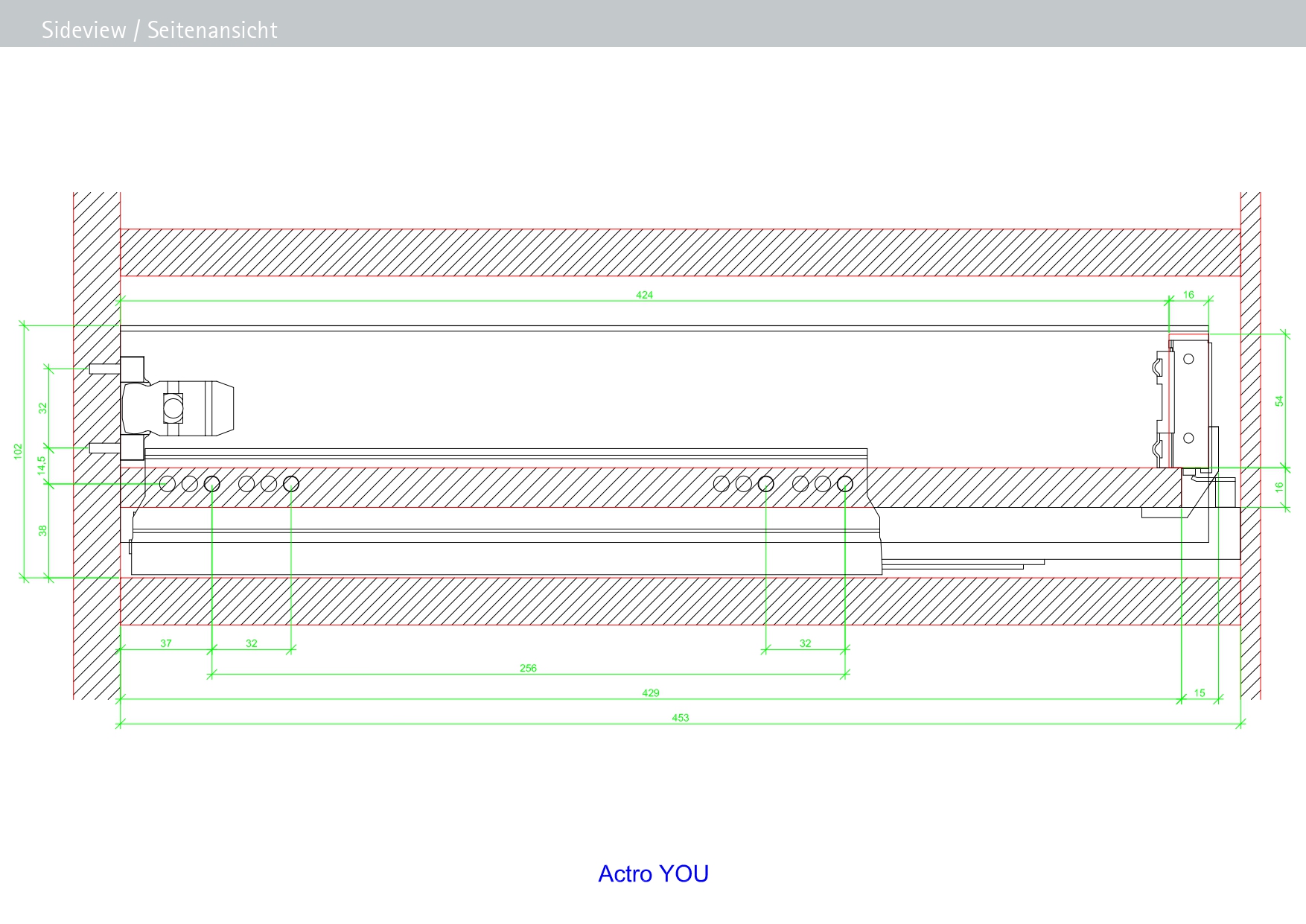• Один выдвижной ящик, две направляющие и идентичная карта сверления;