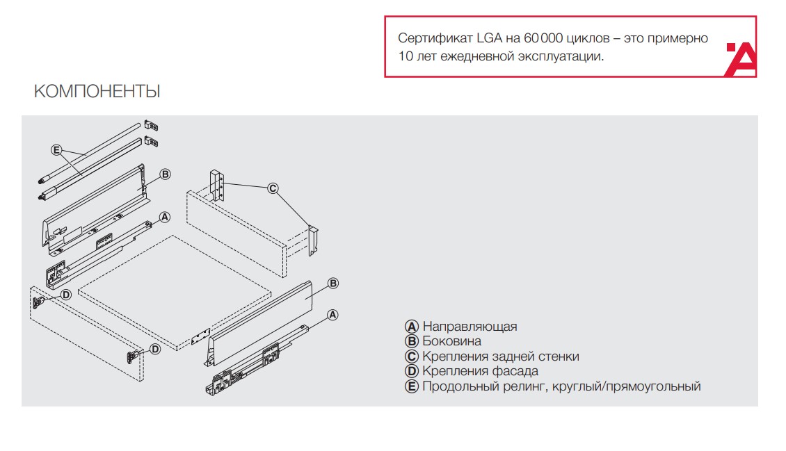 > Bид выдвижения: Механизм полного выдвижения с плавным закрыванием