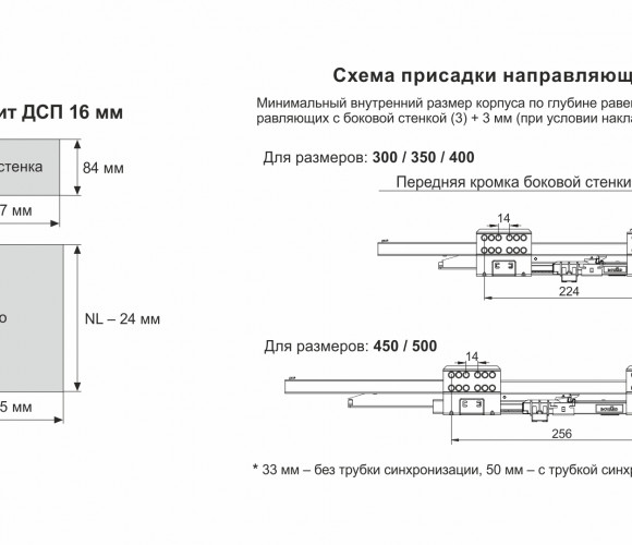 Для сборки выдвижного мебельного ящика на базе СТАРТ PUSH SB09 необходимо самостоятельно изготовить фасад, заднюю стенку и дно ящика.