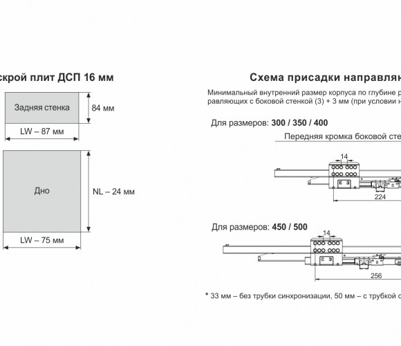 Для сборки выдвижного мебельного ящика на базе СТАРТ PUSH SB09 необходимо самостоятельно изготовить фасад, заднюю стенку и дно ящика.