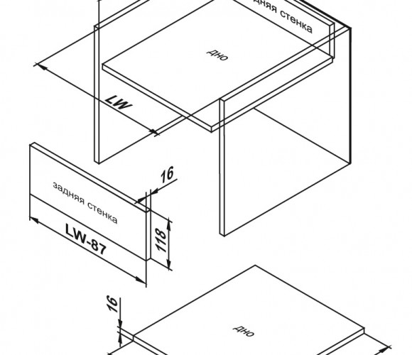 - - Раскрой дна и присадочные размеры для мебельных ящиков, как с традиционными,