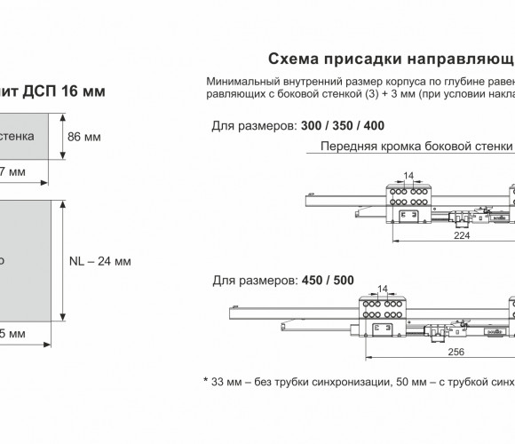 Для сборки выдвижного мебельного ящика на базе СТАРТ PUSH SB28 необходимо самостоятельно изготовить фасад, заднюю стенку и дно ящика.