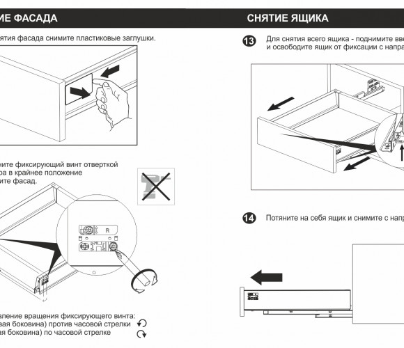 Для сборки выдвижного мебельного ящика на базе СТАРТ PUSH SB29 необходимо самостоятельно изготовить фасад, заднюю стенку и дно ящика.