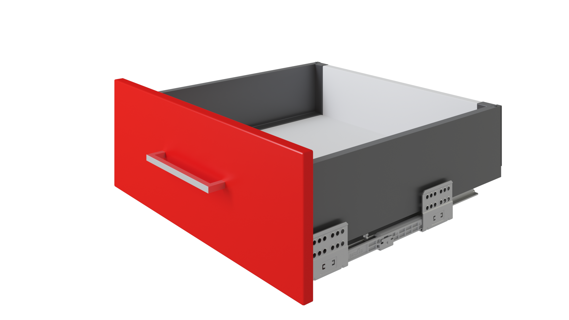 Прямые металлические боковины выдвижного мебельного ящика системы СТАРТ представлены в трёх цветах: графитовый, серый и белый. Толщина прямых боковин – 12,8 мм. Боковины имеют качественное порошковое покрытие и прослужат весь эксплуатационный срок, даже в условиях агрессивной кухонной среды.