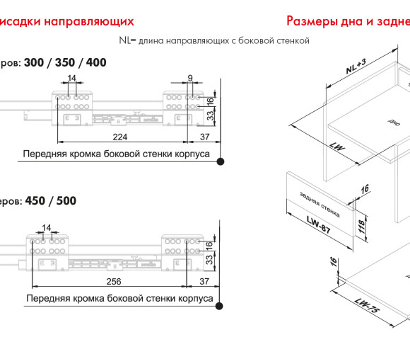 Для сборки выдвижного мебельного ящика на базе СТАРТ SB19 необходимо самостоятельно изготовить фасад, заднюю стенку и дно ящика.