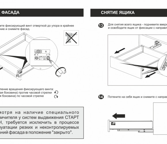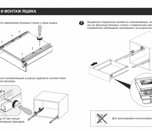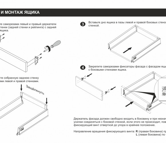 Для сборки выдвижного мебельного ящика на базе СТАРТ PUSH SB29 необходимо самостоятельно изготовить фасад, заднюю стенку и дно ящика.