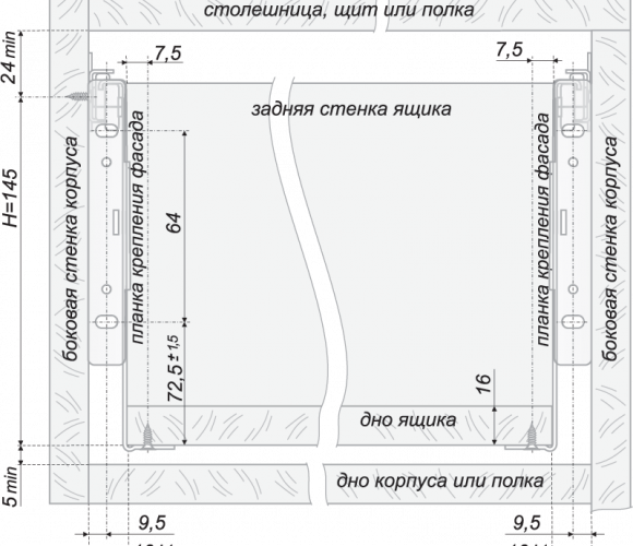 Минимальная высота проёма: 174 мм