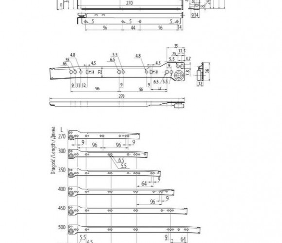• При необходимости увеличения размера ящика (наращивания высоты), продольные рейлинги приобретаются отдельно.