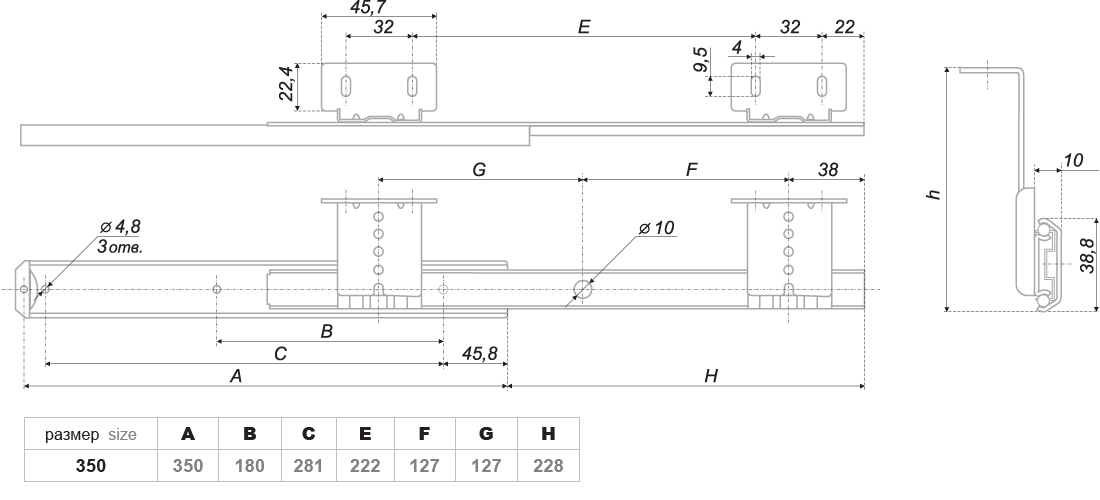 Напр-щие д/клавиатуры Цинк шир.35мм DB3521Zn/350