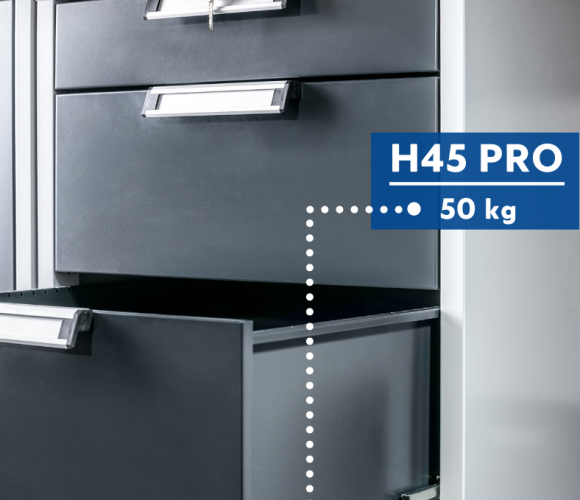 - Отличительная особенность шариковых направляющих данного типа (H45 PRO); повышенная нагрузка - 50 кг.