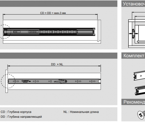 Высота направляющих: 46 мм