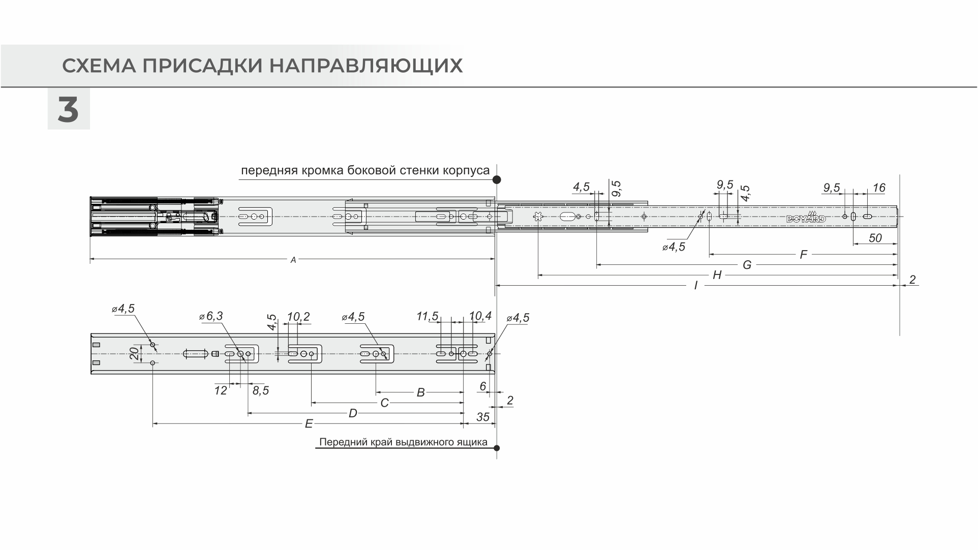 Ширина направляющих составляет ровно 13 мм, а значит раскрой дна для мебельного ящика максимально удобен и прост.