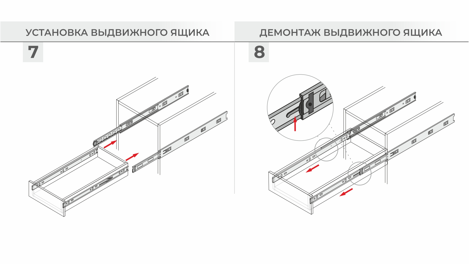 Модель комфортна и приятна в использовании, обеспечивает равномерное и плавное закрывание выдвижного мебельного ящика благодаря усиленной конструкции доводчика с двумя пружинами и амортизатором. Механизм доведения обладает функцией самопостановки при сбросе. Для перевзвода нужно вручную довести мебельный ящик в положение «закрыто», и доводчик будет снова активирован.