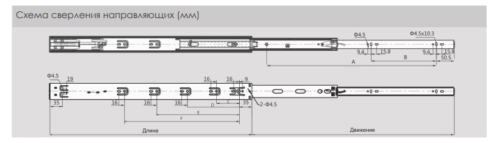 Направляющие шариковые DTC 450 h=45 45кг, полного выдв. с дов. (4587118H) 0015581