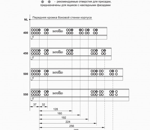 Направляющие СКРЫТОГО монтажа push-to-open DB8885Zn/350 полного выдв.