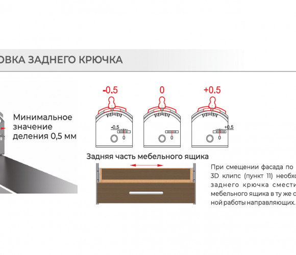 B-Slide DB9991 — направляющие скрытого монтажа полного выдвижения с 3D-регулировкой и синхронизацией. Реальная корректная и полноценная 3d-регулировка с помощью клипсы и подвижного заднего крючка позволит легко уточнить положение мебельного ящика или компенсировать возможные погрешности монтажа без применения доп. инструмента и без ухудшений параметров комфортного хода.