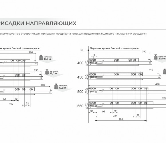 Направляющие скрыт. монт. В-Slide DB8782Zn/550 1D, частичного выдв. с доводчиком