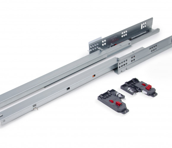 B-Slide DB8781 — базовые направляющие скрытого монтажа полного выдвижения с плавным доведением и выверенным набором опций и возможностей для мебельных производителей.