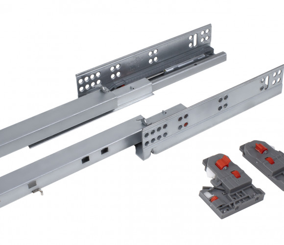 B-Slide DB8781 — базовые направляющие скрытого монтажа полного выдвижения с плавным доведением и выверенным набором опций и возможностей для мебельных производителей.