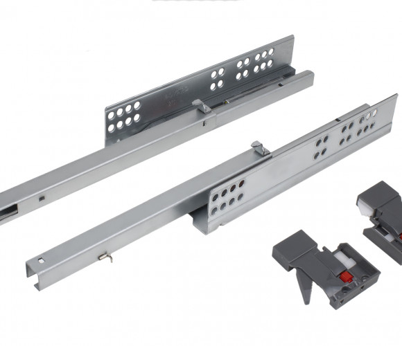 B-Slide DB8782 — базовые направляющие скрытого монтажа неполного выдвижения с плавным доведением. Модель надвижного монтажа с клипсой.