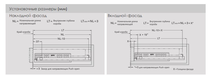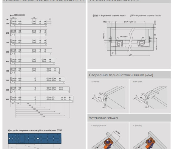 Направляющие скрыт. монт. DTC S10D/400 25кг 2D, полного выдв. с дов. (S10D400HX) 0016656