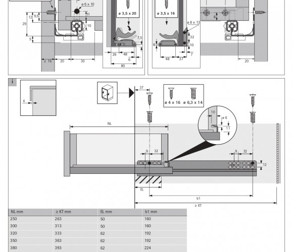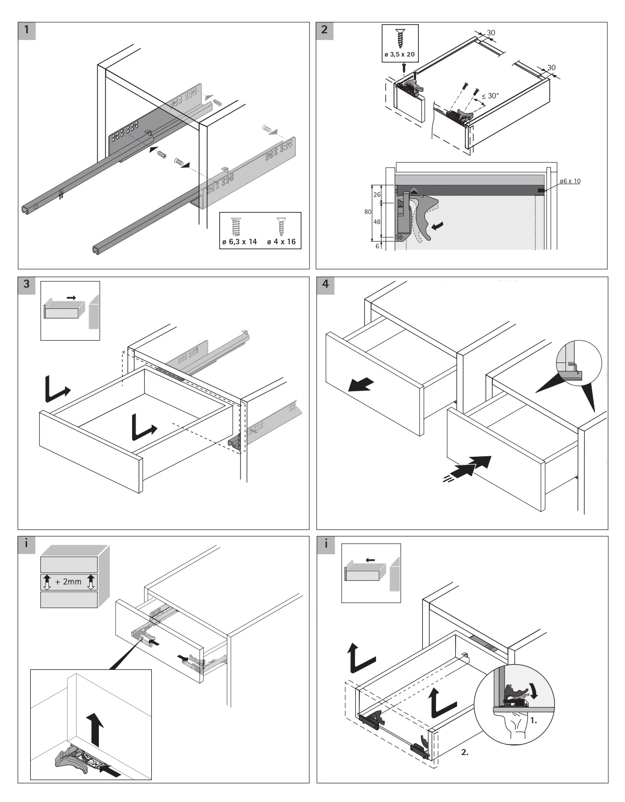 • - Гибкая система замены — вместо Quadro с частичным выдвижением устанавливаются направляющие полного выдвижения, размеры корпуса, ящика и передней панели при этом не меняются